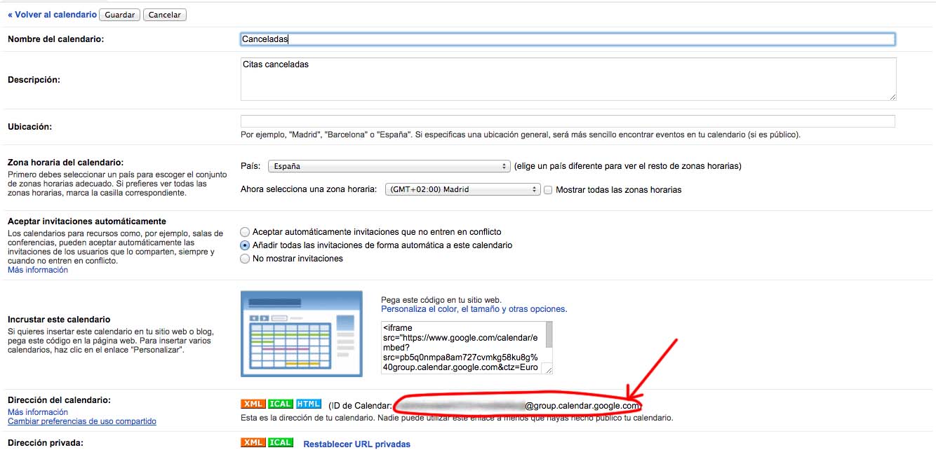 donde deberás sustituir las XXXXXXXXXX por la ID de Calendar
